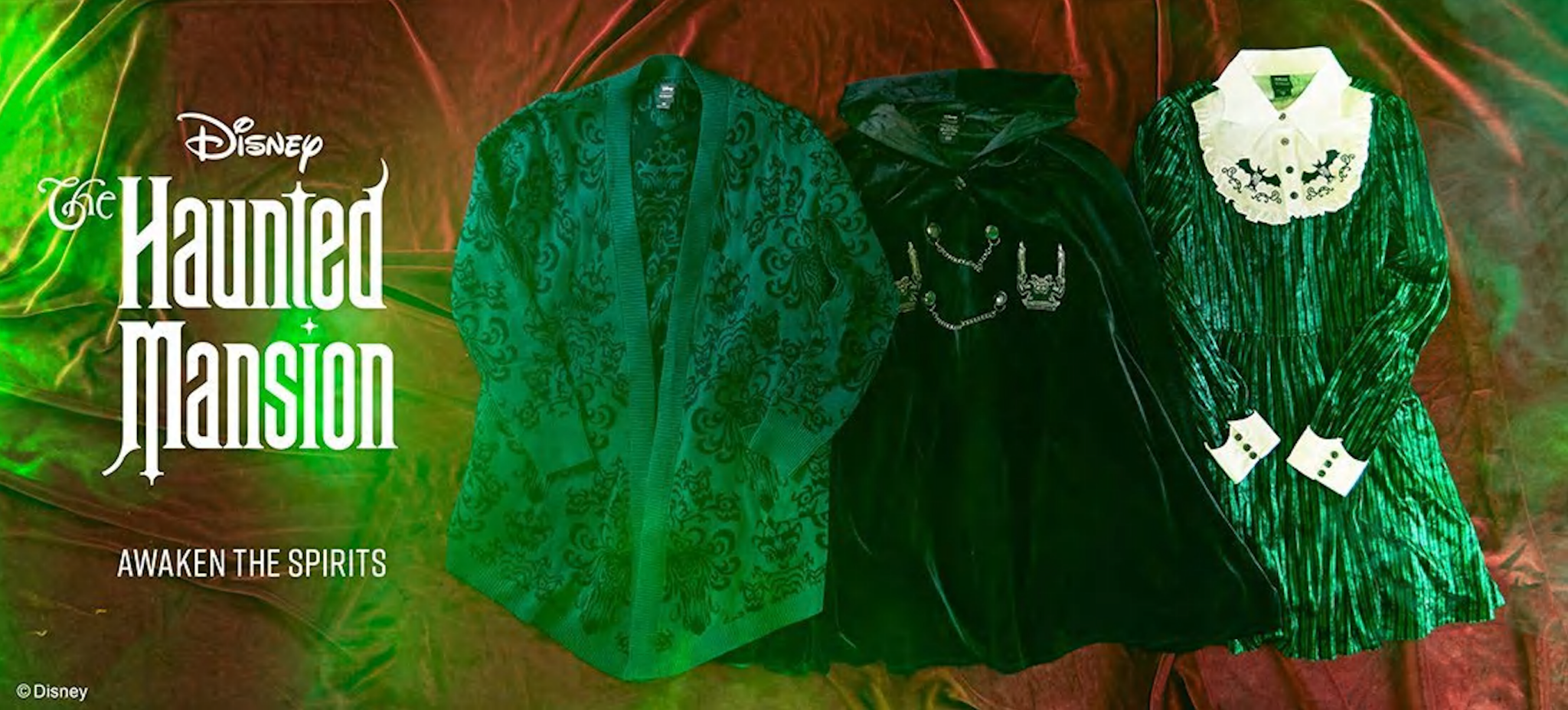 The size-inclusive collection includes loungewear, button-ups, cardigans, a cape and a dress — each with design details and easter eggs that will leave any fan of The Haunted Mansion grinning with ghoulish delight!