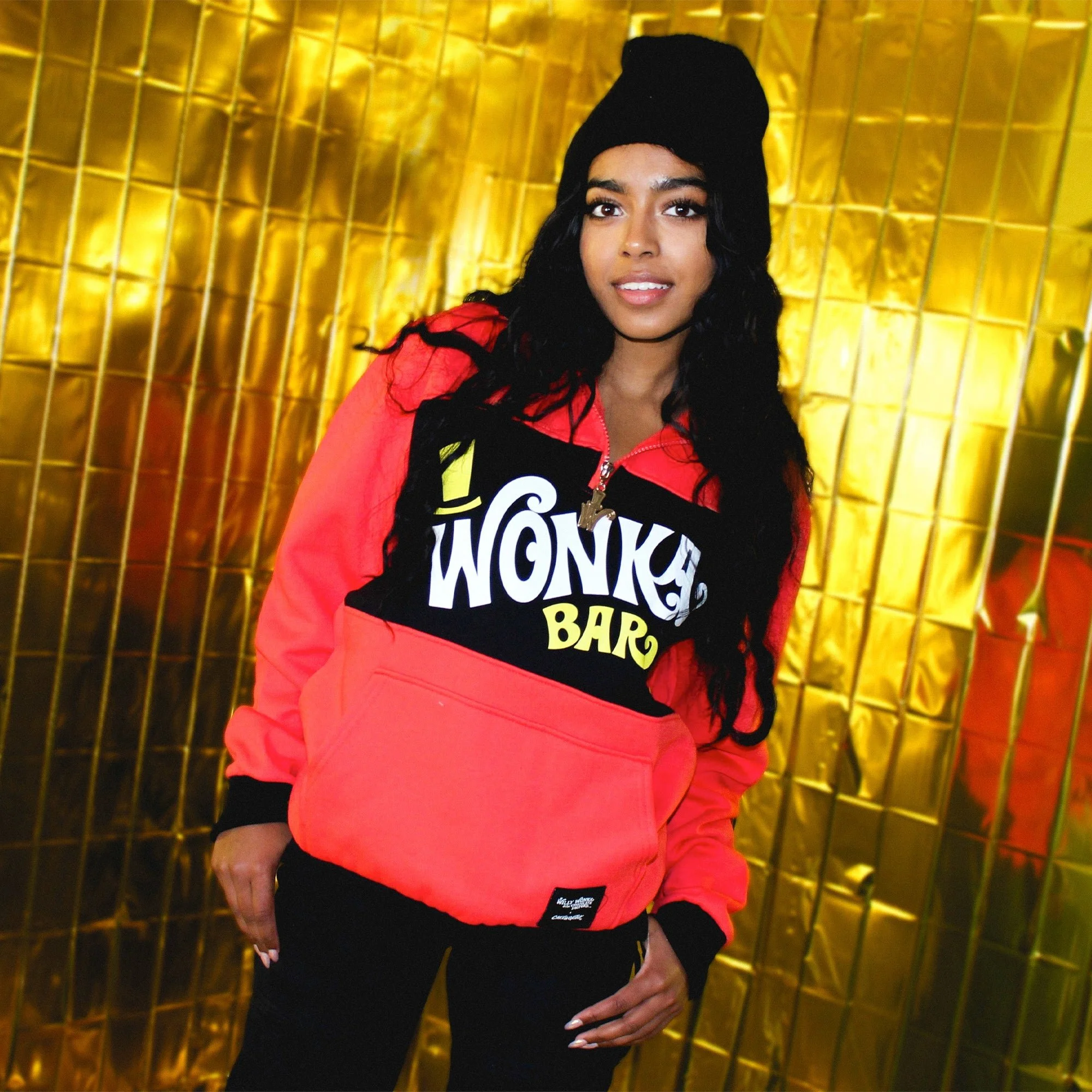 One of the highlights of the collection includes the Wonka Bar Teddy Jacket ($70) featuring an all-over print of the iconic Wonka Bar. When you open up the jacket you find a chocolate bar pattern printed along the inside and gold zipper detailing featuring the Wonka “W” and tophat. Perfect for staying cozy throughtout the chilly season.