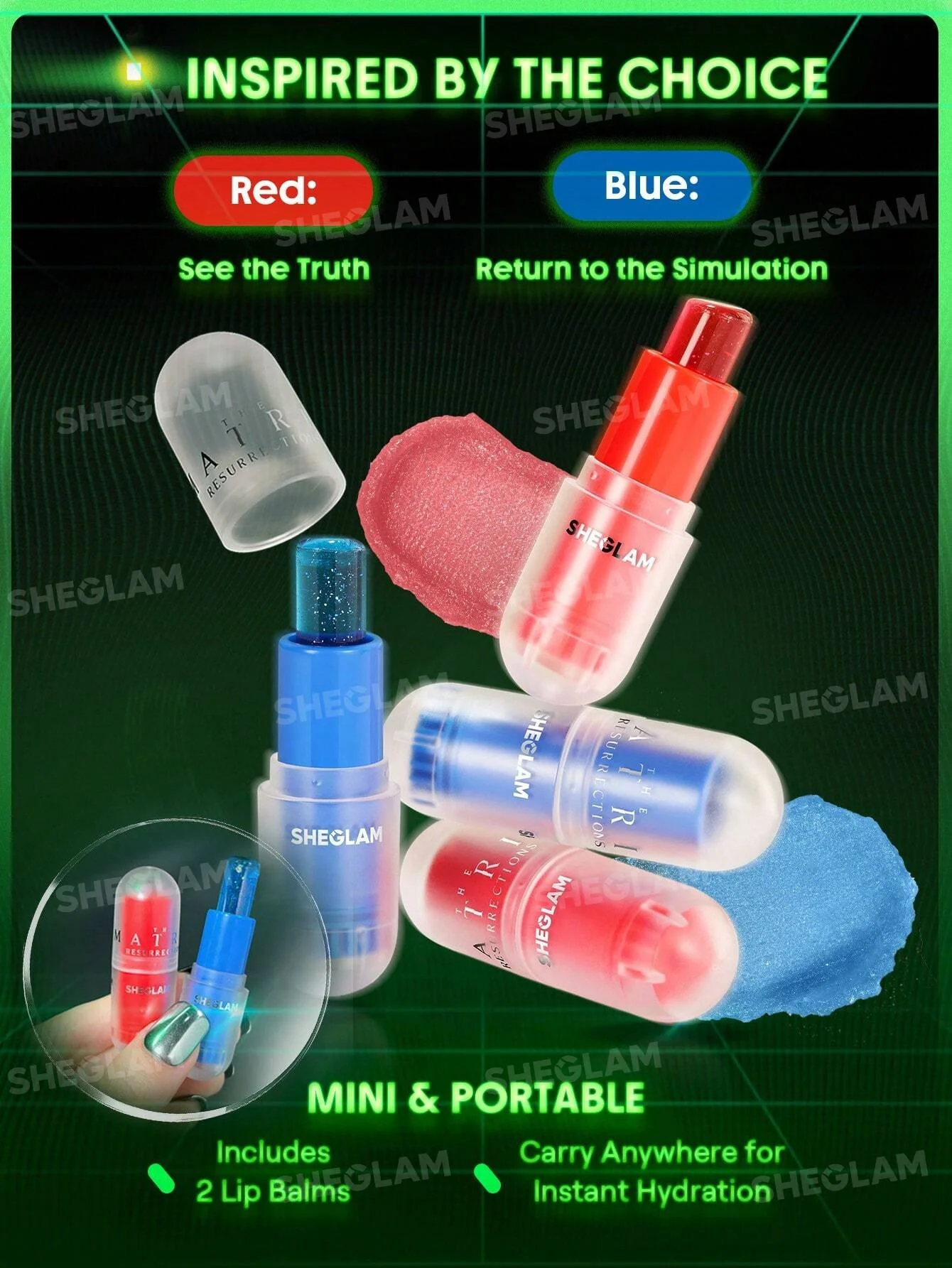 Are you The One? Follow the white rabbit and discover a new reality of glam with our SHEGLAM Collection! Choose the fate of your lip look with our The Choice Lip Duo, then free your mind with new wave eye looks using our Prophecy Palette. Dodge agents and travel between worlds with our Going Digital Two-Tone Blush, then turn your look multidimensional with our Enter Highlighter and high-shine Slowmo Lip Gloss. Shape your own path and question everything with this futuristic makeup set. The truth is out there.