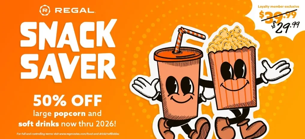 If National Popcorn Day leaves you craving more, Regal’s Snack Saver program is back for 2026. Loyalty members can enjoy 50% off a large popcorn and large soft drink every 24 hours through the end of the year.